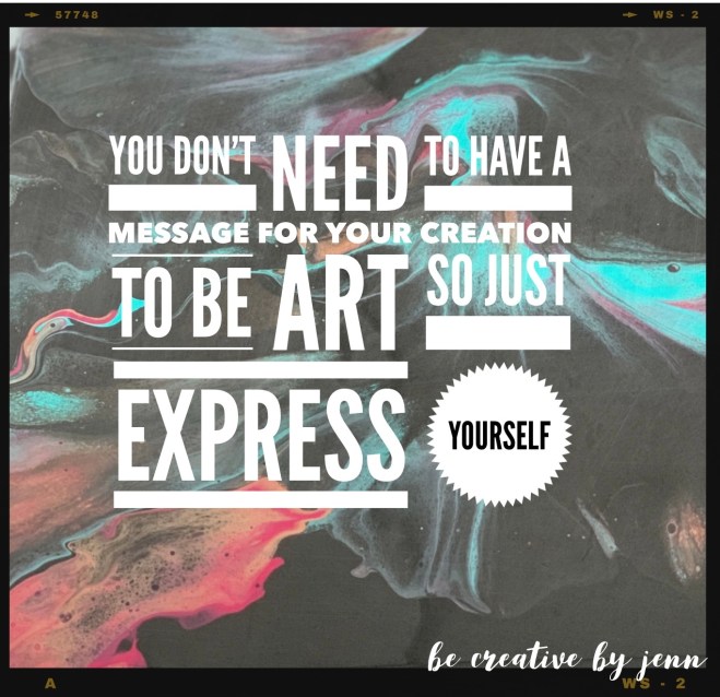 Quote of the week – “You don’t need to have a message for your creation to be art, so just express yourself” The Philosopher’s Guide to the Universe Love the message, everyone is creative and have fun. Good quick read